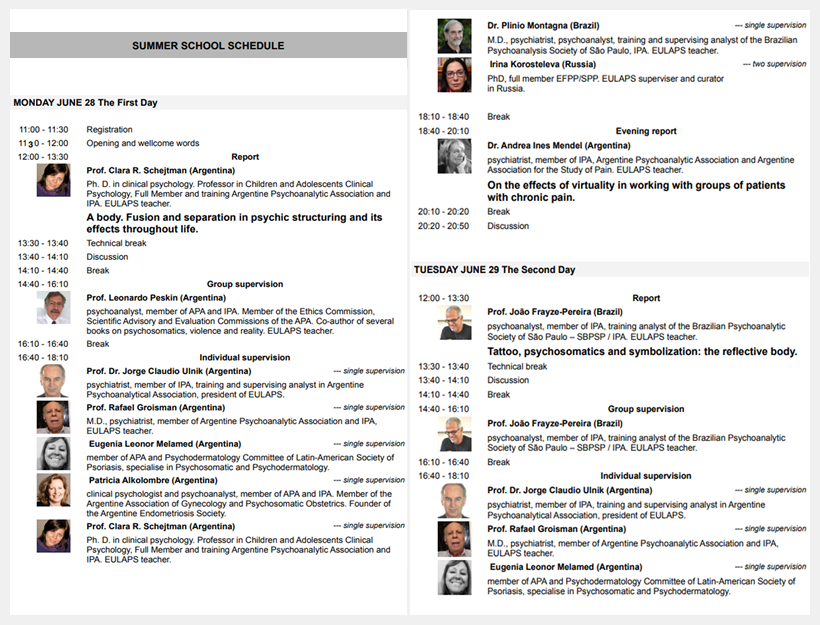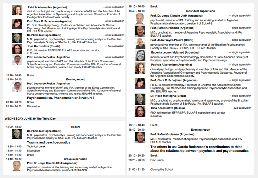 -Participación como supervisor clínico en la 11va Escuela de Verano “Body and other” de EULAPS. Vía online, los días 28, 29 y 30 de junio de 2021.